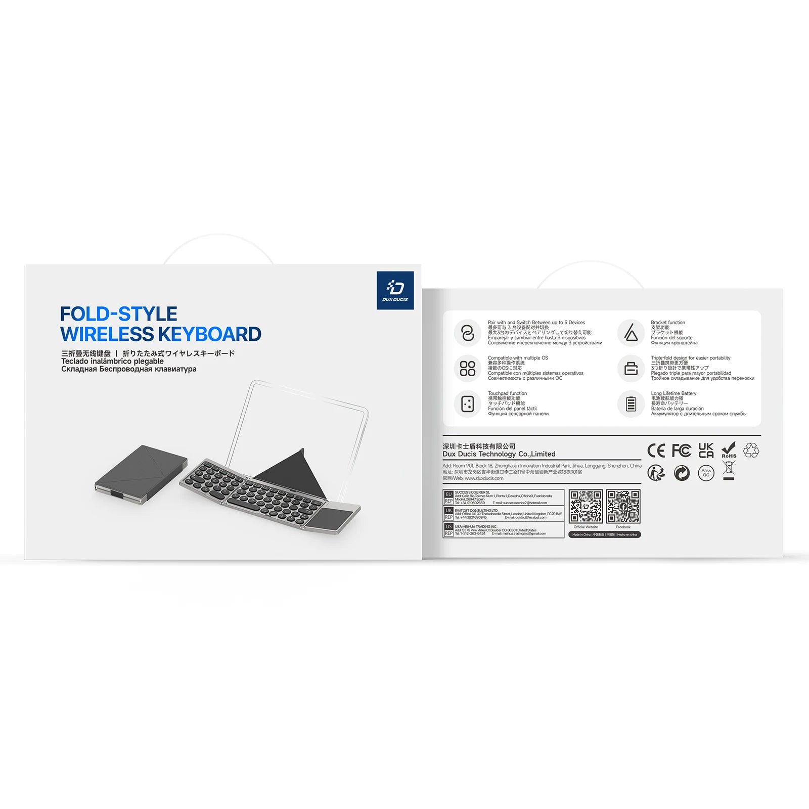 DUX DUCIS Foldable Bluetooth Mini Keyboard with Touchpad & Holder For Phones Tablets PC iOS Android Windows Mac Compatible