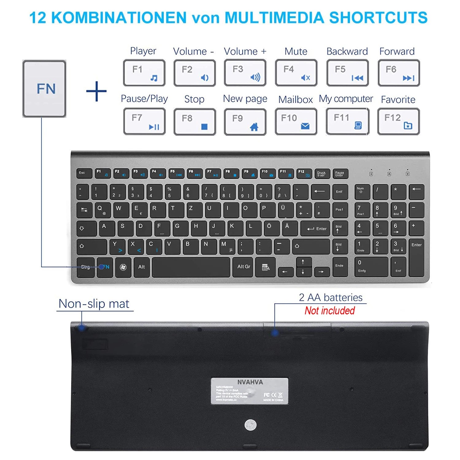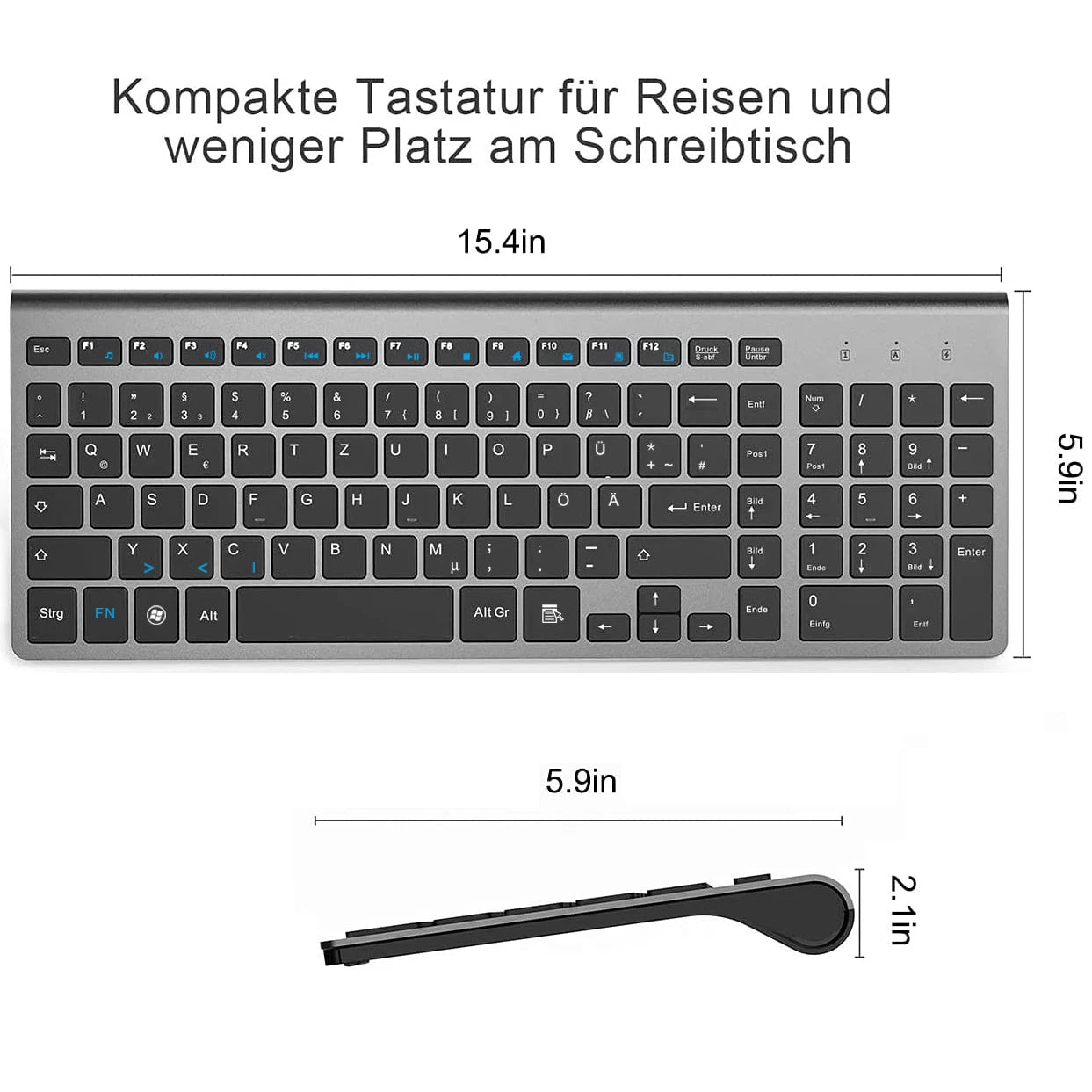German QWERTZ Layout Ultra Slim 101 Keys Wireless Keyboard Multimedia Low Noise 2.4G Keyboard for Windows 7 10 Android TV Box