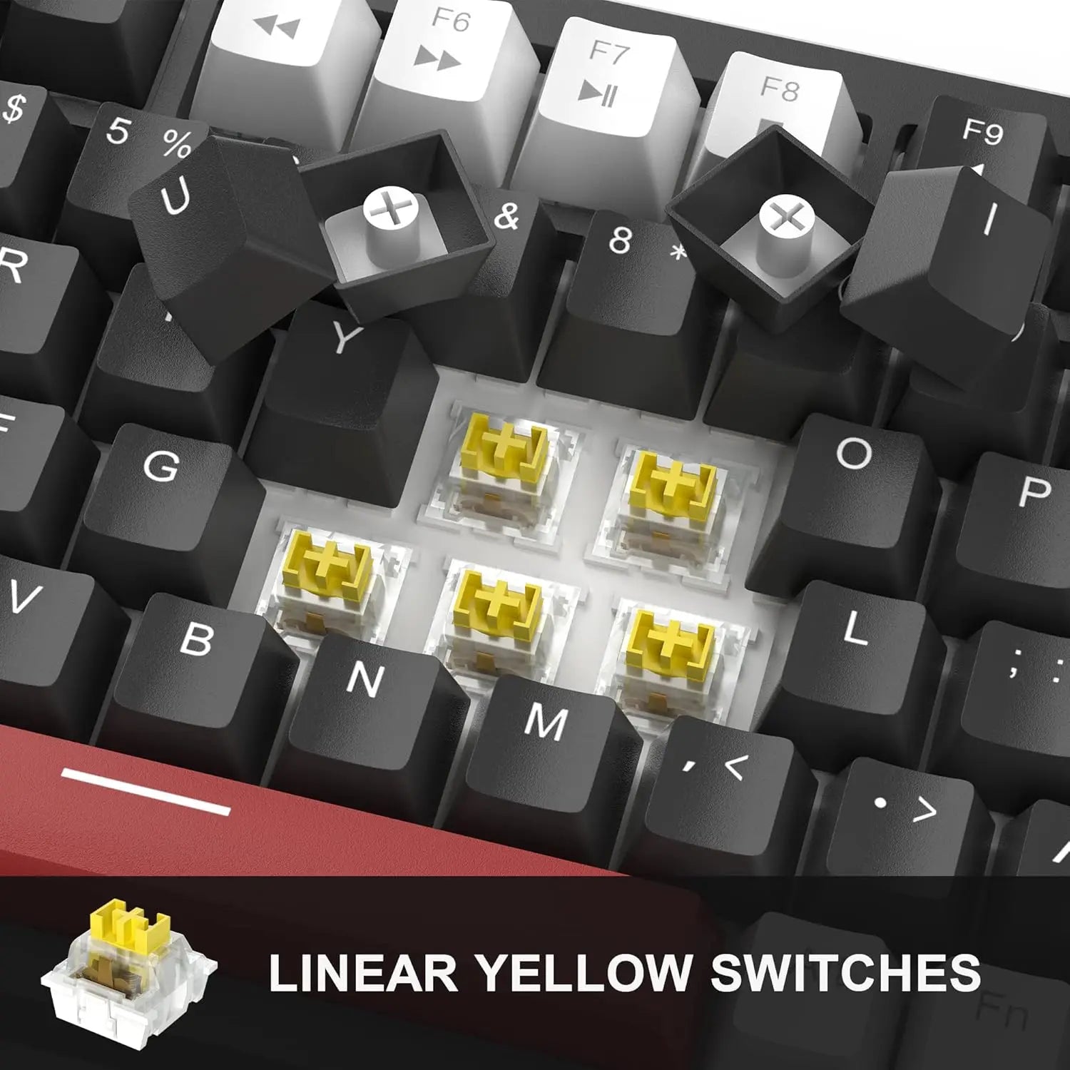 • LINEAR BLACK SWITCHES: Excellent performance with an expected lifespan of 50 million times. The black switch has short key travel, fast response, smooth keystroke, low sound and strong pressing force. Ideal for games that require high operating sensitivity. 100% anti-ghosting, each keystroke is correctly detected even if you press many keys on the keyboard.
