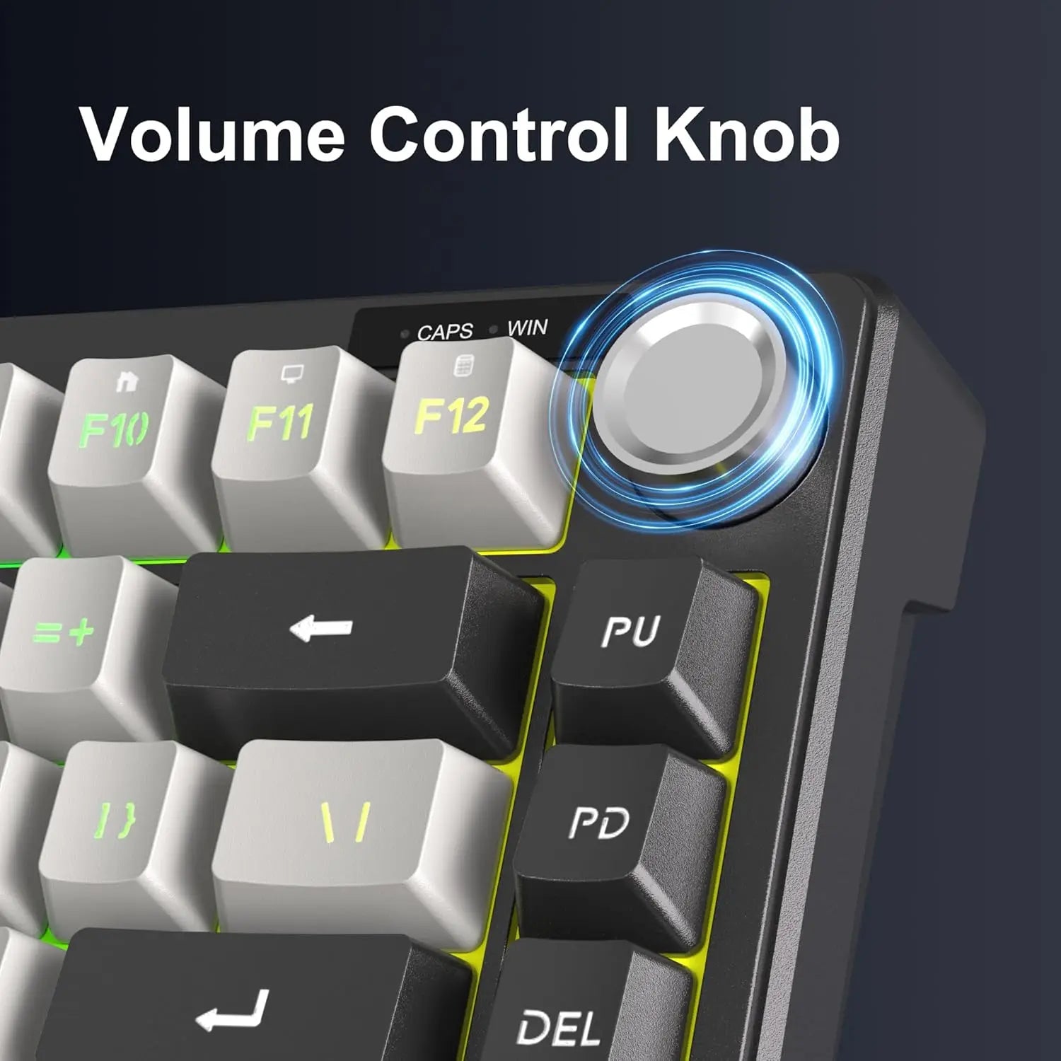 • ✅【Classic 60% Compact Layout】 The 60% size design perfectly suits both home and office environments. A rotary knob on the upper-right corner allows for convenient volume adjustment. The omission of the numeric keypad enhances practicality while freeing up more desk space.